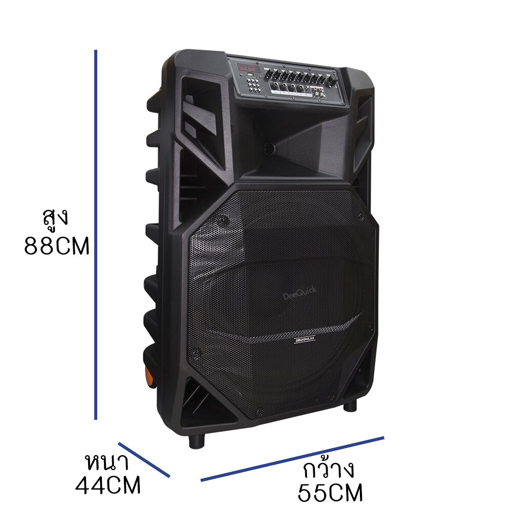 ตู้ลำโพง18นิ้ว กำลังขับ 100W Soundmilan ML-2212 ถ้าคุณกำลังมองหา ลำโพงขนาดใหญ่ สำหรับงานกลางแจ้ง ดีควิกขอแนะนำให้คุณลูกจักกับ ลำโพงล้อลาก ขนาด18นิ้ว ยี่ห้อ Soundmilan รุ่น ML-2212 ตู้ลำโพงอเนกประสงค์ ด้วยกำลังขับถึง 100Watt ตัวตู้ผลิตตจากไฟเบอร์คุณภาพดี ทำให้แข็งแรงทนทาน มีอายุการใช้งานยาวนาน มาพร้อมไมค์ลอยระบบ UHF จำนวน 2ตัว คุณภาพเสียงละเอียดเหมาะสำหรับใช้งาน ในห้องประชุมใหญ่ ห้องสัมมนา ห้องบอลลูม ห้องคาราโอเกะ เวทีคอนเสริต์ และงานกลางแจ้ง นอกจากนั้นยัง ML-2212 ยังถูกออกแบบมาให้มีอะแดปเตอร์บิวอินในตัว ทำให้ชาร์ตง่ายมากขึ้นเพียงแค่เสียบปลั๊กจากไฟฟ้าบ้านเท่านั้น รายละเอียดสินค้า ✔มีช่องเสียบ Aux OUT ✔มีไมค์ลอยมือถือย่านความถี่ UHF 2 ตัว ✔ต่อสายใช้ไฟฟ้าบ้านได้ ✔Frequency Response : 100Hz-15KHz ✔S/N Ratio : 60dB ฟังก์ชัน · บันทึกเสียง · EQ · เล่นไฟล์MP3 · ปรับแต่งเสียงลำโพง : VOLUME , BASS , TREBLE · ปรับแต่งเสียงไมค์โครโฟน : VOLUME , BASS , TREBLE · ปรับแต่งเสียงกีตาร์ : VOLUME · Priority ลดระดับเสียงเพลงลงเมื่อใช้ไมค์พูด (โหมดDJ) รับประกันสินค้า 1 ปี ![]() ลำโพงบลูทูธ ตู้ลาก 18 นิ้ว 100W SOUNDMILAN ml-2212 ML-2212 คือ ตู้ลำโพงบลูทูธ ระดับTOP จากค่าย SOUNDMILAN ด้วยขุมกำลังขยาย 100W ดอกลำโพงขนาด 18นิ้ว ทำให้ได้คุณภาพเสียง ดังกระหึ่ม เบสหนักแน่น ถล่มแผ่นดิน เสียงคมกริบ จึงเหมาะมากๆสำหรับใช้ในงาน กลางแจ้ง คอนเสิร์ต งานวัด งานอีเวนท์ ต่างๆ วันนี้ หจก.ดีควิก พร้อมแล้วที่จะส่งความกระหึ่มนี้ไปสู่คุณทั่วประเทศไทย DETAILS